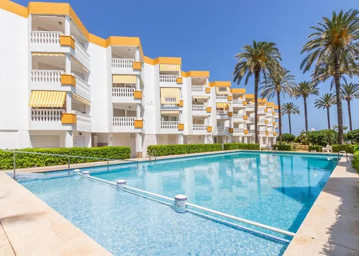 The beachfront 60 m² A46 Vistas Al Mar Desde La Terraza Apartment Denia includes a terrace and is located approximately a 10-minute ride from the Denia Castle. Guests can use Wi-Fi for either business or leisure reasons.